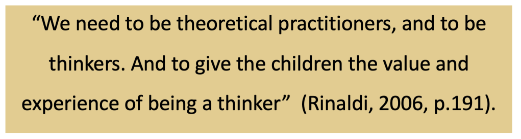 “Remember always that the best learners in the school must be the teachers – learning about the learning of the children. Passion and love are our daily duty in education” (Gambetti, 2008).